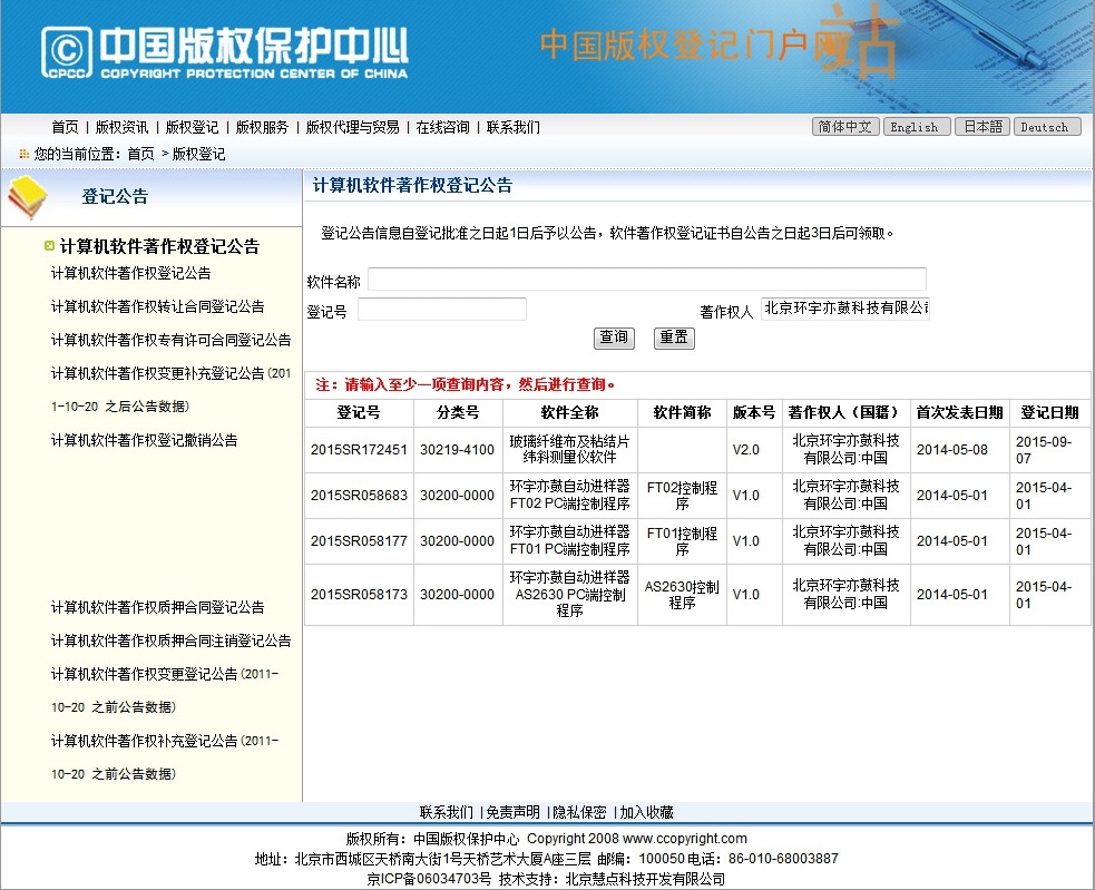 软件著作权登记公告